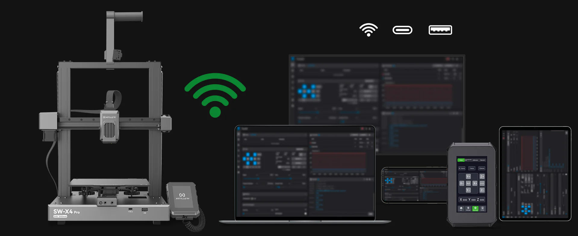 The embedded WIFI module allows for faster pairing and more stable connection.Making it a simple and reliable remote printing and monitoring solution for the Sidewinder X4 PRO 3D printer.